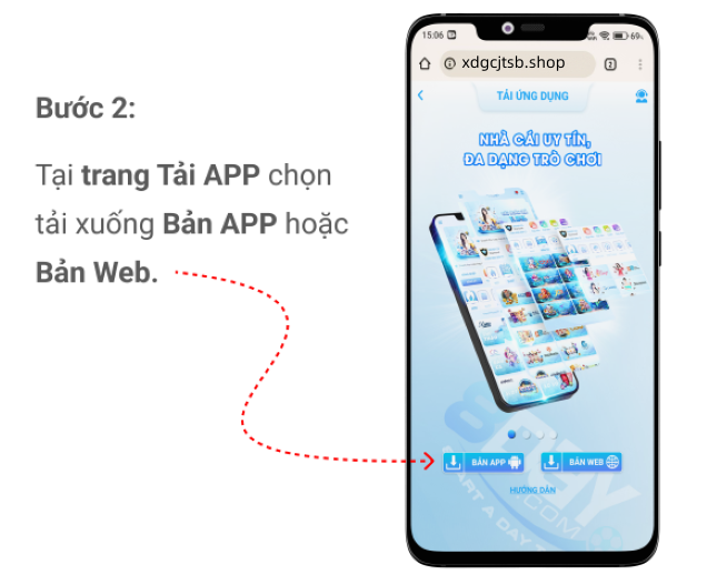 Buóc 2: Tại trang Tải APP chọn tải xuống Bản APP hoặc Bản Web